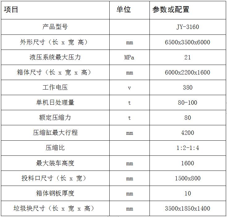 JY-3160 水平式四柱舉升垃圾壓縮設(shè)備用于對(duì)城鎮(zhèn)居民生活區(qū)、學(xué)校、醫(yī)院、公園景區(qū)、廠礦和機(jī)關(guān)單位的生活垃圾以及固體廢棄物的收集、壓縮減容和封閉轉(zhuǎn)運(yùn)。